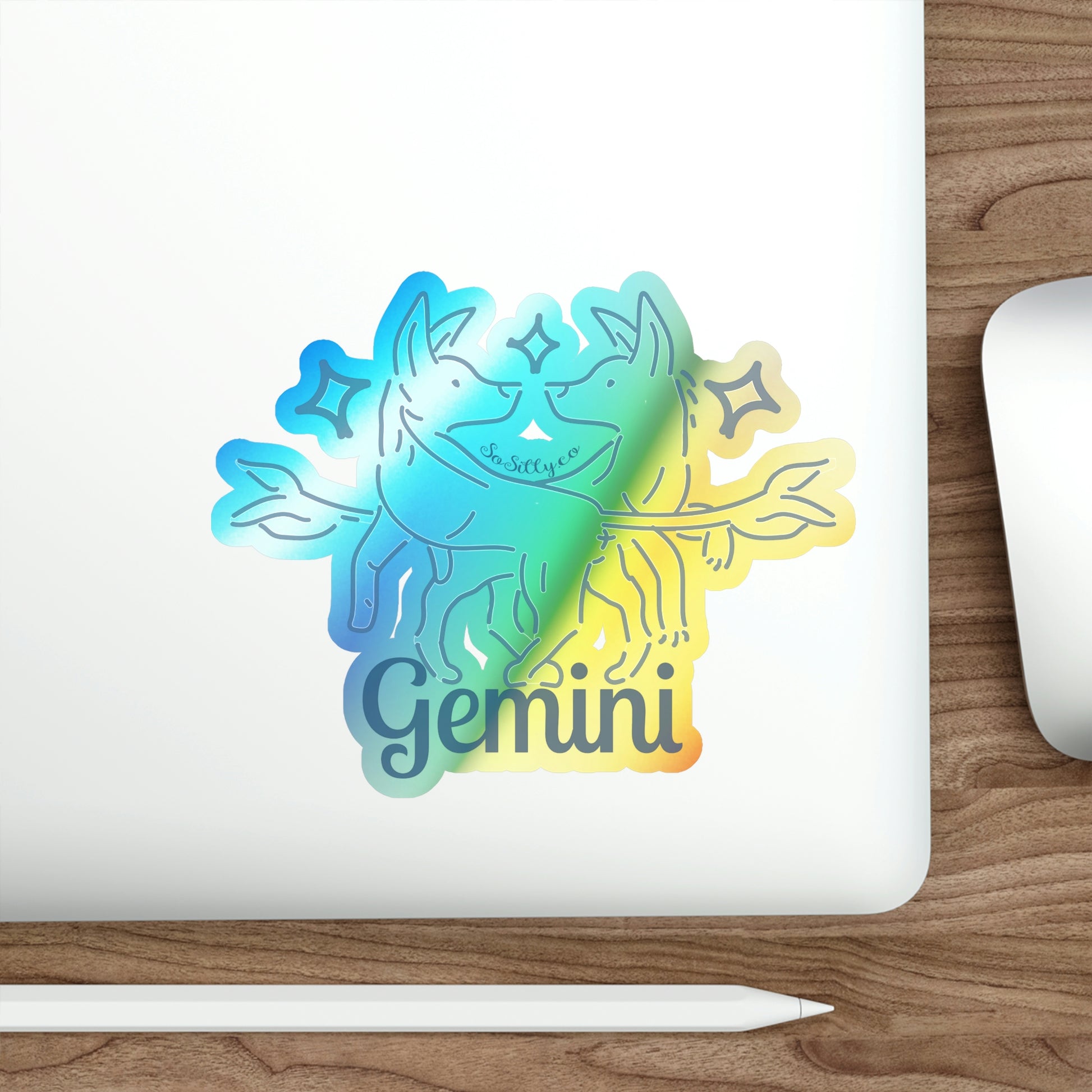 So Silly Astrology Dog | Holographic Die-cut Sticker - Gemini